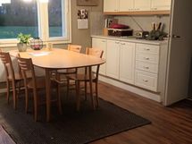- Tilaa isolle ruokapöydälle, Suuri tiskipöytä, Paljon kaappitilaa, Paljon työskentelytilaa, Laminaattitasot, Astianpesukone, Keraaminen liesi, Liesituuletin, Jääkaappi, Pakastin