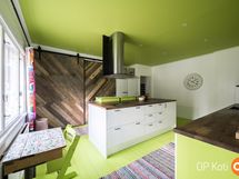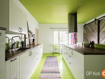 - Jääkaappi, pakastekaappi, erillisuuni, keraaminen liesi, liesituuletin, mikroaaltouuni, astianpesukone, kaapistot, kiinteät valaisimet, pöytätasojen materiaali tammi, Kylmäkellari.
