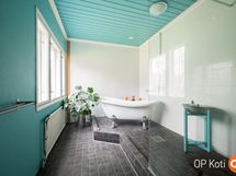 - Sauna, puukiuas, kylpyhuone, erillinen wc x2, suihku x3, amme asuinkrs kph, peilit, kaapit, pesukoneliitäntä khh, lattialämmitys molemmat kph:t, alak.wc,alak.varasto, kiinteät valaisimet, alak. wc:n pesuallasteline (vanha fillari).