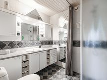 - Pesutilojen varusteet: Pesukoneliitäntä, wc-istuin, suihkuseinä, lattialämmitys, pesuallas, peili, allaskaappi ja bidee-suihku.