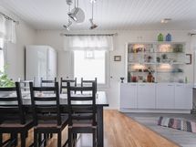 - Keittiön varusteet: Jääkaappi, astianpesukone, liesi, liesituuletin, erillinen pakastin ja puuhella, leivinuuni. Liesi: Keraaminen liesi.