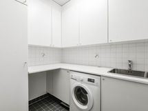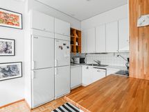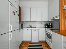 - Keittiön varusteet: Jääkaappipakastin, jää-viileäkaappi, liesi, liesituuletin ja astianpesukone. Liesi: Keraaminen liesi. Työtason materiaali: Laminaatti.