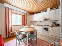 Tämä tilava koti tarjoaa käytännöllisen pohjaratkaisun. Talo on edelleen pitkälti alkuperäisessä kunnossa, mikä antaa uudelle omistajalle mahdollisuuden tuoda siihen omaa tyyliään. Olohuoneen keskiössä oleva varaava takka luo lämpöä ja tunnelmaa kylmiin talvipäiviin. Pienellä huololla tästä talosta saa loistavan kodin, joka sopii erinomaisesti perheelle tai pariskunnalle, joka arvostaa luonnon läheisyyttä.