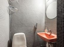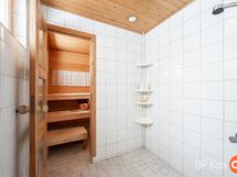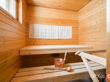 Sauna, sähkökiuas, kylpyhuone, erillinen wc, peilikaappi, pesukoneliitäntä, lattialämmitys, kiinteät valaisimet.