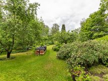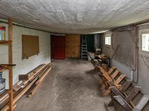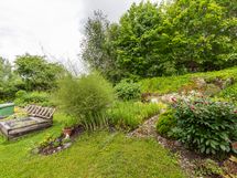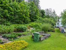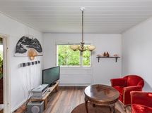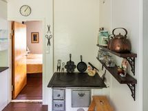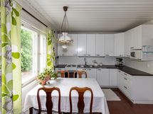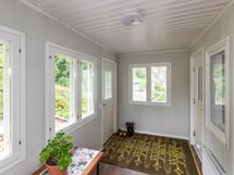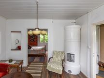Sähköliittymä. Muuta kauppaan kuuluvaa: Sälekaihtimet. Matontamppausteline. Pyykinkuivatusteline. Istutukset. Jätesäiliö. Kauppaan ei kuulu: Eteisen naulakko ja puuhellan vieressä olevat hyllyt.