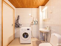 - Pesutilojen kuvaus: Seinät laatalla, lattia epoksia. Varustuksena suihku, peilikaappi, pesuallas, pesukoneliitäntä, wc-istuin ja bideesuihku. Erillisten WC:n lukumäärä: 1. Erillisen WC:n kuvaus: Lattia epoksia, seinät laattaa. Varustuksena peili ja taso, käsienpesuallas, wc-istuin sekä bideesuihku.