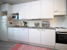 - Varusteet: jenkkikaappi, astianpesukone. Työtaso: laminaattitaso. Liesi: sähköliesi, liesituuletin suodattimella