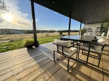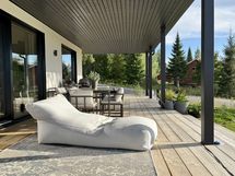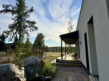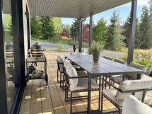 - Iso katettu terassialue talon kahdella sivulla