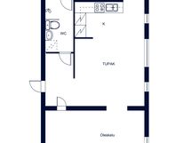 Varustus: jääkaappi/pakastin, astianpesukone, induktioliesi/uuni, liesituuletin.