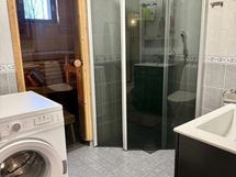 - Sauna, sähkökiuas, kylpyhuone, erillinen wc, suihku, suihkukaappi, peilikaappi, allaskaappi, pesukoneliitäntä, kiinteät valaisimet.