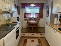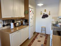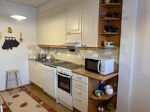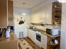 - Jääkaappipakastin, keraaminen liesi, liesituuletin, astianpesukone, kiinteät valaisimet, kiinteät kaapit.