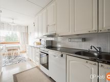 - Viileäkaappi, keraaminen liesi turvakytkimellä, liesituuletin, astianpesukone, kaapistot.