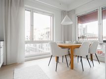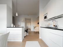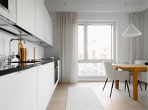 Tämän kodin sydän on keittiön, ruokailutilan ja olohuoneen muodostama avara tila, josta on käynti aamuauringon puolelle avautuvalle lasitetulle parvekkeelle. Asunnosta ja parvekkeelta on näkymä niin Ruoholahdenkanavalle kuin urbaaniin Jätkäsaareen. Tässä kodissa pääset nauttimaan oman saunan löylyistä, ja arjen mukavuutta on myös eteisen yhteydessä oleva erillis-wc. Säilytystilaa on makuuhuoneiden ja eteisen säilytysjärjestelmissä sekä päämakuuhuoneen yhteydessä olevassa vaatehuoneessa.
