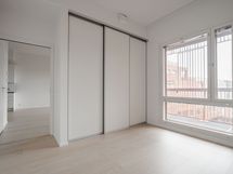 Toimiva kaksio, jossa keittiö on kätevästi olohuoneen yhteydessä mutta kuitenkin hieman erillään omassa kulmauksessaan. Makuuhuone on omassa rauhassaan liukuoven takana. Olohuoneesta on käynti sisäpihanpuoleiselle koko asunnon levyiselle lasitetulle parvekkeelle. Säilytystilaa on makuuhuoneen ja eteisen säilytysjärjestelmissä.
