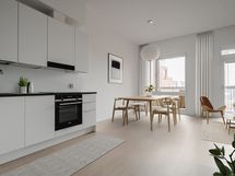 Huomaathan, että visualisoinnit sekä mallisisustetun huoneiston kuvat eivät välttämättä ole tästä asunnosta. Kuvat ovat tästä kohteesta ja aina suuntaa antavia. Asunnon pohjakuvasta näet tämän huoneiston.