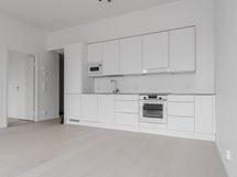 Toimiva kaksio, jonka moderni keittiötila ja olohuone muodostavat yhtenäisen tilan. Makuuhuone on omassa rauhassaan liukuoven takana. Olohuoneesta on käynti kadunpuoleiselle lasitetulle parvekkeelle. Säilytystilaa on makuuhuoneen ja eteisen säilytysjärjestelmissä.