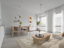 Huomaathan, että visualisoinnit sekä mallisisustetun huoneiston kuvat eivät välttämättä ole tästä asunnosta. Kuvat ovat tästä kohteesta ja aina suuntaa antavia. Asunnon pohjakuvasta näet tämän huoneiston.