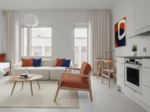 Huomaathan, että visualisoinnit sekä mallisisustetun huoneiston kuvat eivät välttämättä ole tästä asunnosta. Kuvat ovat tästä kohteesta ja aina suuntaa antavia. Asunnon pohjakuvasta näet tämän huoneiston.