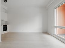 Toimiva kaksio, jossa keittiö kätevästi olohuoneen yhteydessä mutta kuitenkin omassa syvennyksessään. Makuuhuone on omassa rauhassaan liukuoven takana. Olohuoneesta on käynti sisäpihanpuoleiselle koko asunnon levyiselle lasitetulle parvekkeelle. Säilytystilaa on makuuhuoneen ja eteisen säilytysjärjestelmissä.