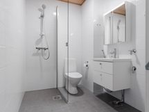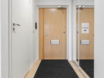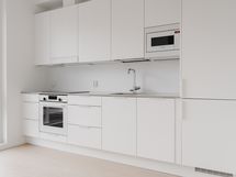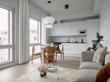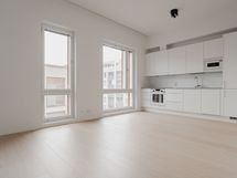 Toimiva kaksio, jonka moderni keittiötila ja olohuone muodostavat yhtenäisen tilan. Makuuhuone omassa rauhassaan pariovien takana. Olohuoneesta on käynti kadunpuoleiselle lasitetulle parvekkeelle. Säilytystilaa on makuuhuoneen ja eteisen säilytysjärjestelmissä.