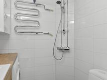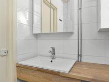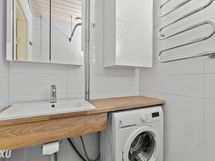 - Pesutilojen varusteet: WC-istuin, suihku, pesukone, pesukoneliitäntä, peilikaappi, pesuallas ja bidee-suihku. Pesutilojen kuvaus: Kompakti kylpyhuone, remontoitu 2016.