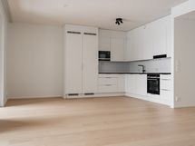 Kodin sydän on keittiön, ruokailutilan ja olohuoneen muodostama avara tila, josta on käynti etelään avautuvalle koko huoneiston levyiselle lasitetulle parvekkeelle. Parvekkeelta avautuu upea merimaisema, josta voi seurata vuodenaikojen vaihtelua ja ohilipuvia veneitä. Makuuhuoneet sijoittuvat omaan rauhaansa asunnon pohjoispäätyyn. Asunnossa on kylpyhuone, sauna ja erillis-wc. Säilytystilaa tuovat makuuhuoneiden ja eteisen säilytysjärjestelmät.