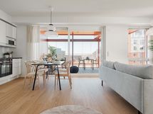 Huomaathan, että visualisoinnit sekä mallisisustetun huoneiston kuvat eivät välttämättä ole tästä asunnosta. Kuvat ovat tästä kohteesta ja aina suuntaa antavia. Asunnon pohjakuvasta näet tämän huoneiston.