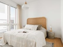 Tämän kodin sydän on keittiön, ruokailutilan ja olohuoneen muodostama avara tila, josta on käynti lasitetun terassin kautta avoterassille. Terassilta on näkymä Ruoholahdenkanavalle ja Saukonpaadenpuiston yli merelle asti. Tässä kodissa pääset nauttimaan oman saunan löylyistä, ja arjen mukavuutta on myös eteisen yhteydessä oleva erillis-wc. Säilytystilaa on makuuhuoneiden ja eteisen säilytysjärjestelmissä.