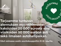 3 h asunnot: - 30 000 € alennus myyntihinnasta + ilmainen autohallipaikka