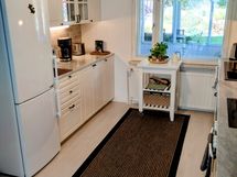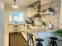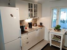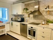 - Kivitasot, Paljon työskentelytilaa, Paljon kaappitilaa, Suuri tiskipöytä, Astianpesukone, Induktioliesi, Liesituuletin, Liesi tai uuni erikseen, Jää-pakastinkaappi