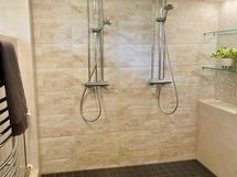 - Useita suihkuja, Poreamme, Rättipatteri, Laattalattia, Pesukonevalmius, Laattaseinä, Lattialämmitys, Erillinen WC