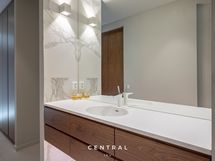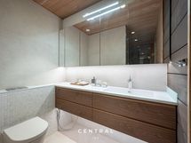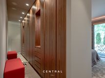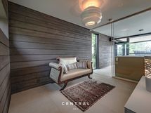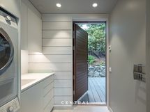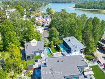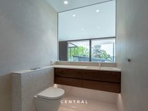 - Pesutilojen kuvaus: Kylpyhuoneiden kalusteet on pähkinäviilutettuja valkoisilla Corian-tasoilla ja -altailla. Kalusteiden alla on lednauha. Kaikki kosteat tilat on laatoitettu samalla laatalla kuin on käytetty muutenkin koko talossa. Erillisten WC:n lukumäärä: 1. Erillisen WC:n kuvaus: Sisääntulon yhteydessä erillinen wc. Talossa on yhteensä kolme wc:tä, joista kaksi kylpyhuoneiden yhteydessä.