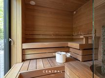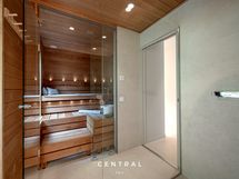 - Kiuas: Sähkökiuas. Sunsaunan moderni suoraviivainen sauna on lämpökäsiteltyä tervaleppää. Täältä on käynti kylpyhuoneen kautta vilvoittelemaan takapihan terassille.
