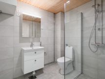 Kylpyhuoneessa on varaus pyykinpesukoneelle ja kuivausrummulle. Pesutornin sijoittaminen onnistuu siis helposti, ja arjen pyykkihuollon sujuvuus on taattu.