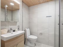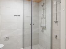 Kylpyhuoneessa on varaus pyykinpesukoneelle ja kuivausrummulle, mikä tekee arjen pyykkihuollosta vaivatonta ja kätevää.