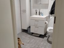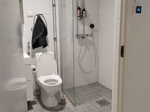 suihku, suihkuseinä, peilikaappi, pesukoneliitäntä, lattialämmitys, bidee