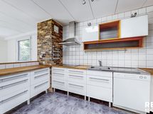 - Varustus: jääkaappi/pakastin, jää/viileäkaappi, liesikupu, astianpesukone. Liesi: keraaminen, keittolevy. Työtasot: puu. Lattia: laatta. Seinät: maalattu.