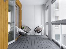 - Iso parveke, jossa lasitus sekä parvekekaihtimet