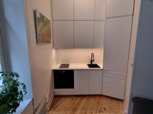 Asuinhuoneiston keittiö on uusittu kokonaisuudessaan vuosina 2023-2024. Keittiöön integroitiin huipputason uuni (lisätoimintoina mm. höyrystäminen ja pyrolyysi), erityishiljainen tiskikone (41 dB), jääkaappi pakastinlokerolla, induktiokeittotaso, kvartsikomposiittinen tiskiallas ja designhana, jossa on hanaletkun ulosvetomahdollisuus. Lisäksi keittiön lattia remontoitiin, ja kahden keittiökaapin sisälle asennettiin pistorasiat esimerkiksi mikroa ja kahvinkeitintä varten. Kaappitilaa on keittiössä remontin myötä erittäin runsaasti.