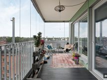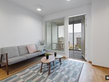 Palvelut: Raitiovaunupysäkki (6,8) on vieressä, lähin kauppa alakerrassa, koulu ja päiväkoteja lähellä, kirjasto ja useita ravintoloita lähellä, hyvät bussiyhteydet, kunto- ja pilatessalit samassa korttelissa, ulkoliikuntapaikkoja.