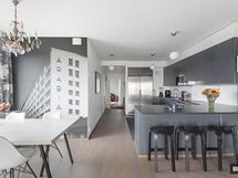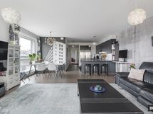 - A) Parvekkeen hoito- ja kunnossapitovastuu osakkaalla, yhtiöjärjestys 5§. B) Paperisen osakekirjan vaihto sähköiseen sekä tästä koituvat kustannukset ovat ostajan vastuulla. - Pintamateriaaleihin on panostettu: lattiat kauttaaltaan tummaa tammiparkettia ja jalkalistat parketin sävyiset, kylpyhuoneen ja erillisen WC:n tummat laatoitukset valittu rakennusvaiheessa, katto tasoitettu sileäksi ja maalattu, seinät maalattu ja vinyylitapetoitu industriaalisen näköiseksi, kaikissa ikkunoissa lämpöä estävät tummennuskalvot.