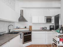 - Liesi: sähköliesi. Kylmäsäilytys: jääkaappi/pakastin. Varustus: mikroaaltouuni, astianpesukone, kiinteät valaisimet, liesituuletin / suodatin.