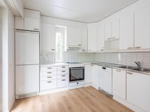 Tilavassa keittiössä on tilaa kaikille perheenjäsenille tai esimerkiksi työ- ja harrastustilaa kotitoimistolle. Hyvin suunniteltu keittiö tarjoaa runsaasti kaappi- ja laskutilaa sekä erinomaiset puitteet ruoanlaittoon.
