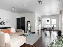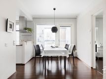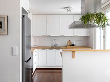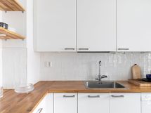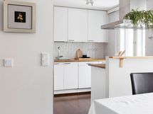 - Samsung-jääkaappi/pakastin, Temptech-viinikaappi, Siemens-astianpesukone, Siemens-keraaminen liesi/uuni, Franke-liesituuletin. Työtasot puuta. Seinissä maali ja kaakeli, lattiassa parketti.