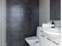 - Pesutilojen kuvaus: wc-istuin, suihku, suihkuseinä, pesukoneliitäntä. Seinissä kaakeli, lattiassa laatta. Erillisen WC:n kuvaus: Lattiakaivo. Seinissä kaakeli, lattiassa laatta.