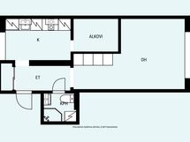 Jos ostaja haluaa niin kauppaan kuuluvat kaikki asunnon irtokalusteet ja pesukone. Alkoviin mahtuu 160 *200 parisänky.