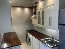- Paljon kaappitilaa, Puutasot, Astianpesukone, Kaasuliesi, Liesituuletin, Jää-pakastinkaappi, Pesukone