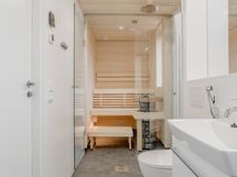 - Laattapisteen laatat ja kalusteet; sadesuihku, kääntyvä suihkuseinä, allaslaatikosto, allas, Damixan hana, seinä-wc, pyykkikaappi, pesukoneliitäntä sekä sauna, jossa pilarikiuas. Lattialämmitys