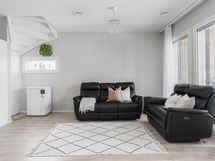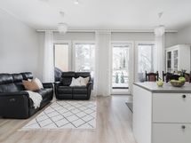 Kodin sydämessä on avara olohuone, joka yhdistyy saumattomasti keittiöön luoden kutsuvan tilan perheen yhteisiin hetkiin. Kolme makuuhuonetta tarjoavat rauhalliset puitteet lepoon, ja oma sauna kutsuu rentoutumaan kiireisen päivän päätteeksi. Lisäksi asunnossa on kylpyhuone kaikilla mukavuuksilla sekä erillinen wc, jotka tekevät arjesta sujuvaa.