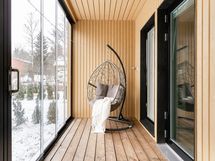 Erityisen ihastuttava on lasitettu terassi, joka suuntautuu lounaaseen – täydellinen paikka nauttia auringonlaskuista tai vilvoitella saunan jälkeen. Lämmitysjärjestelmänä toimii maalämpö, mikä on paitsi ekologinen myös kustannustehokas valinta.